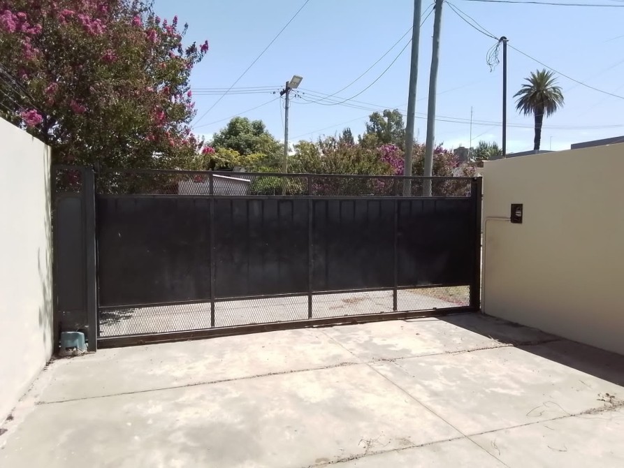 Entrada peatonal e ingreso vehicular con portón de hierro.